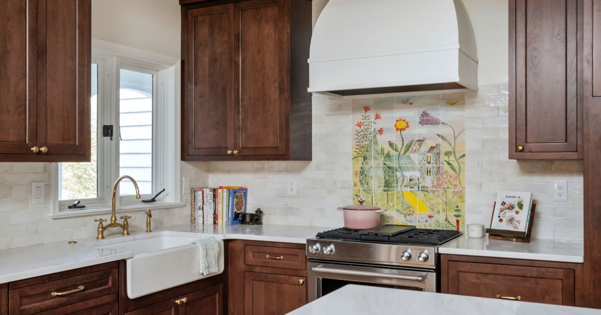 One of the most unique elements of this renovation is the handcrafted tile mural, a gift from a family member.